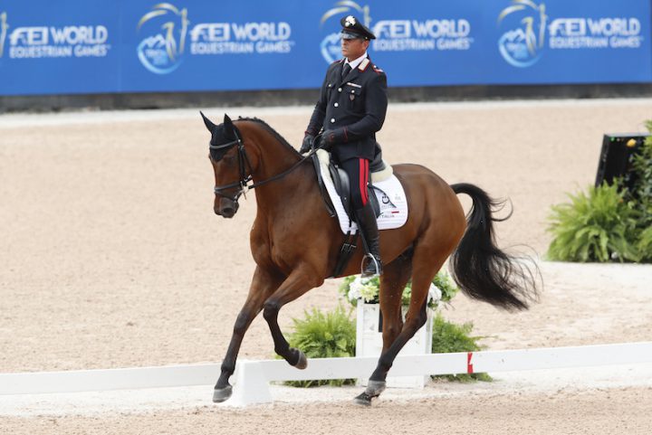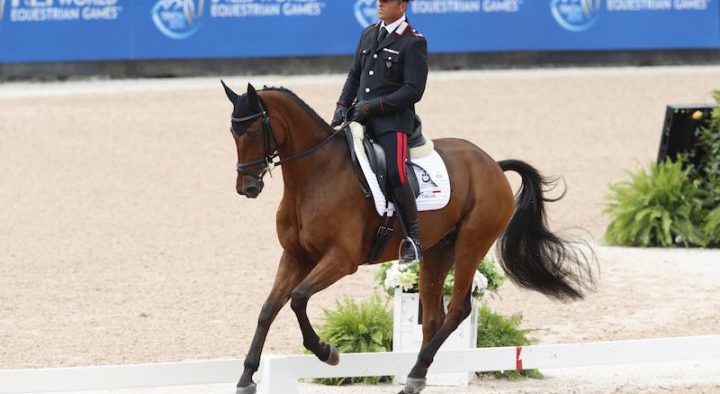 Ieri, venerdì 14 settembre, è terminato il Dressage test del Completo che ha visto in rettangolo gli altri due componenti della squadra italiana: l’appuntato scelto Stefano Brecciaroli su Byrnesgrove First Diamond e Arianna Schivo su Quefira de l’Ormeau e Simone Sordi, a titolo individuale, su Amacuzzi.