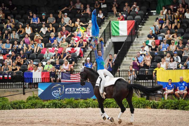 Ieri, 19 settembre, in campo a Tryon ai Mondiali dell’Equitazione il duo azzurro composto da Silvia Stopazzini e Lorenzo Lupacchini in sella a Rosentolz (Long. Laura Carnabuci) per la disciplina del volteggio, ha dato vita ad una bellissima prova nel Pas de Deux. Con il punteggio di 9.057, la coppia italiana, prima nell’ordine di partenza, ha terminato in seconda posizione la gara, dopo aver mantenuto la leadership per gran parte della prova. Il duo azzurro tornerà in campo oggi, giornata decisiva per l’assegnazione delle medaglie.