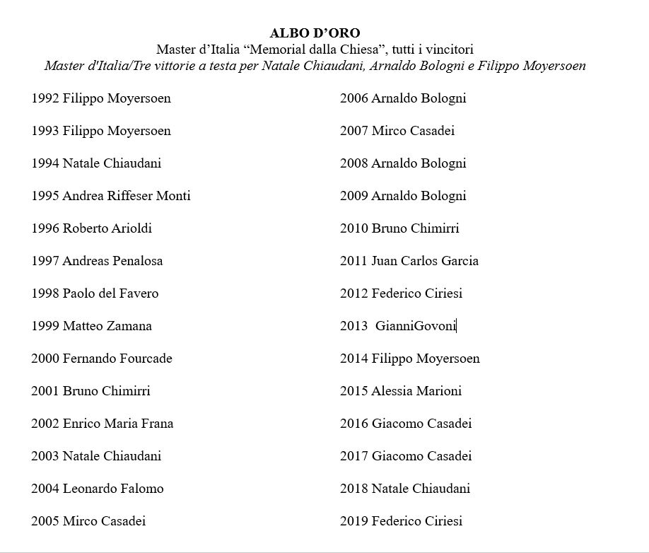 © da Comunicato a cura di Maria Cristina Magri – Ufficio Stampa XXIX Memorial Dalla Chiesa; foto in copertina: F. Ciriesi, vincitore dell’ed. 2019 del Master d’Italia ©AndreaBonaga Communication